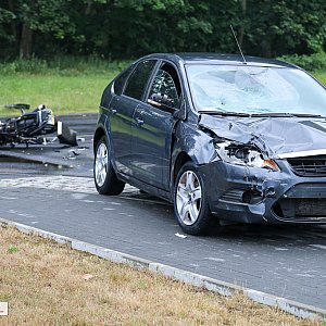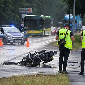 Jak informuje Policja, kierująca samochodem osobowym jechała od strony Tanowa do Polic. Zjeżdżając z drogi głównej w kierunku sklepu, wymusiła pierwszeństwo na jadącym prawidłowo motocykliście.