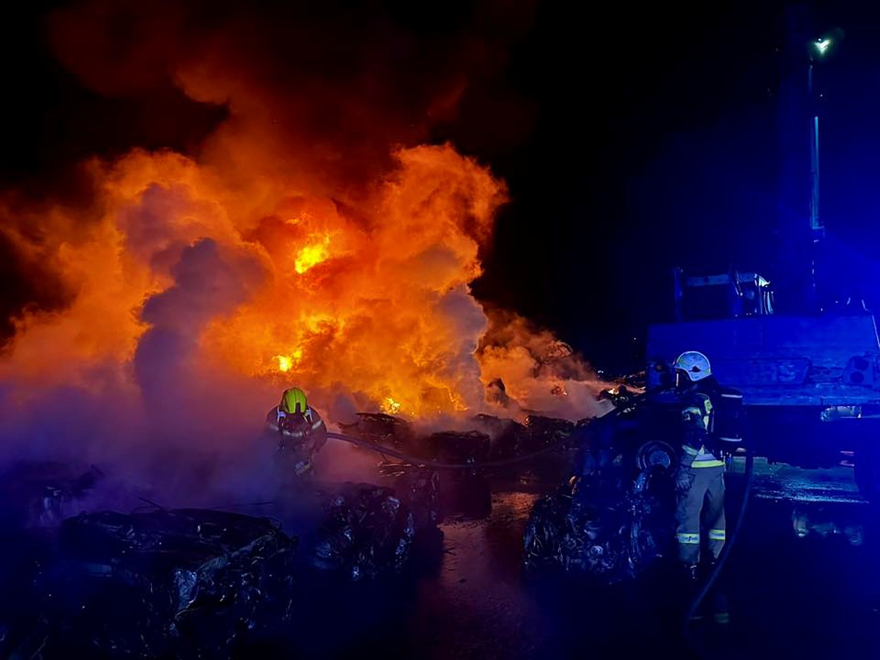 Ponad 50 strażaków uczestniczyło w akcji gaśniczej na terenie skupu pojazdów w podszczecińskim Stobnie, gdzie w czwartek wieczorem zapaliły się zezłomowane, sprasowane auta. W zdarzeniu nikt nie ucierpiał. Trwa dogaszanie pożaru.