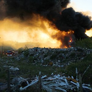 10 zastępów straży pożarnej gasi pożar wysypiska odpadów przy ul. Kamiennej w Policach. Pożar zaczął się rozprzestrzeniać około godz. 19. Gęsty dym jest spychany na osiedla w Policach dlatego też straż zaleca aby pozamykać okna.