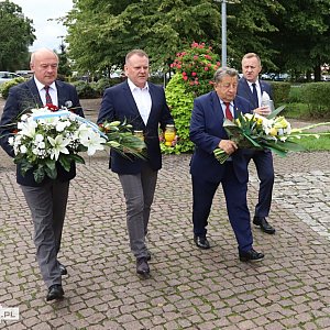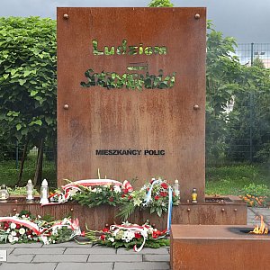 Przedstawiciele gminy Police i powiatu polickiego złożyli również kwiaty i zapalili znicze przed pomnikiem św. Jana Pawła II.