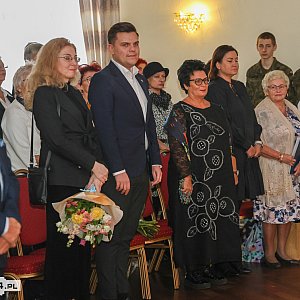 Życzenia, kwiaty i upominki na ręce dyrygentki Marty Pietrzak złożyli m.in. Krystian Kowalewski burmistrz Polic i wicestarosta policki Damian Walczak.