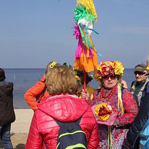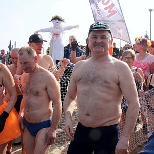 Na plaży w Trzebieży oprócz turystów chcących powitać wiosnę, a dzisiaj akurat wiosna pokazała się w pełnej krasie, pojawiły się również morsy. Oni akurat wraz z nadejściem wiosny zazwyczaj kończą sezon zimowych kąpieli. Dzisiaj pomogli rozprawić się z Marzannami.