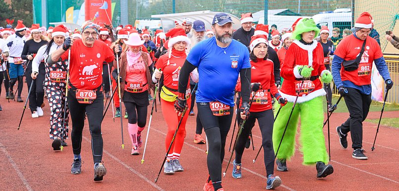 Ponad 270 osób rywalizowało w marszu nordic walking na 5 km podczas XIII Biegu Mikołajkowego, który odbył się dzisiaj (7 grudnia) w Policach.