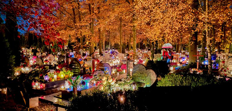 W dniu Wszystkich Świętych cmentarze po zmroku wyglądają wyjątkowo. Blask zniczy, przemykający alejkami ludzie, to wszystko skłania do zadumy i refleksji.
